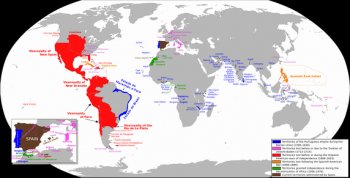This drove to a development where territories in American continent were divided among both empires. You can see in the following map how were occupied those territories:
